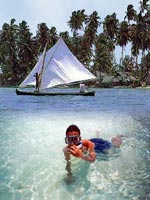 Yandup is a paradise island surrounded by coral reefs. It has a little beach with calm and crystal clear water and miles of sand within walking distance. Yandup belongs to a small archipelago, where you can even go swimming from one island to the other, crossing channels of various debts